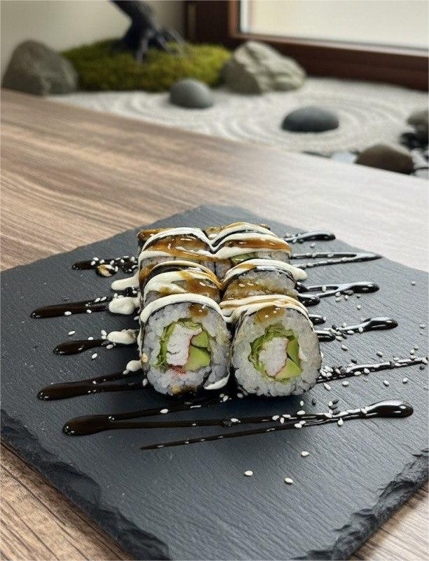 Угорь, авокадо, сыр, кунжут, унаги соус